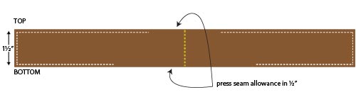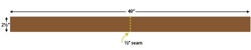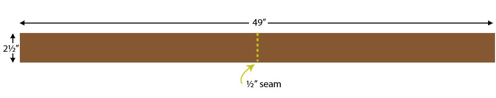 - Take one pair, and using a ½” seam allowance, stitch, right sides together, along one 2½” side. Repeat with the other pair. This will give you two strips that are 2½” x 49″.