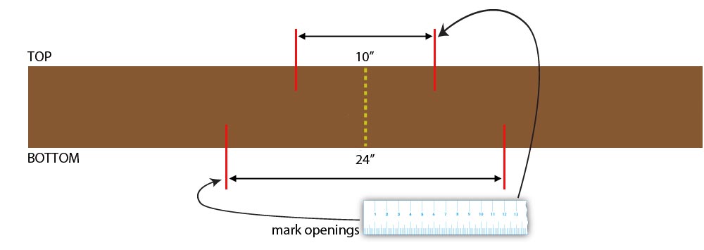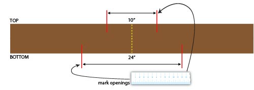 - Finally measure and mark 1½” to the right of the rightmost pin and 1½” to the left of the leftmost pin.