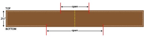- Mark a vertical line from the bottom of the pocket panel to the top accent strip of the pocket.