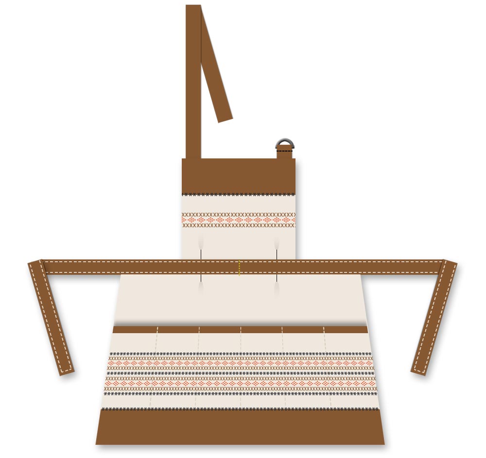 - The apron bib front requires THREE guides lines. First find the center point (top to bottom) of the bottom portion of the bib (the center of the Natural fabric in our sample). Draw this line first, horizontally across the entire piece. Then, draw one parallel line ⅜” above the center line and one parallel line ⅜” below the center line.