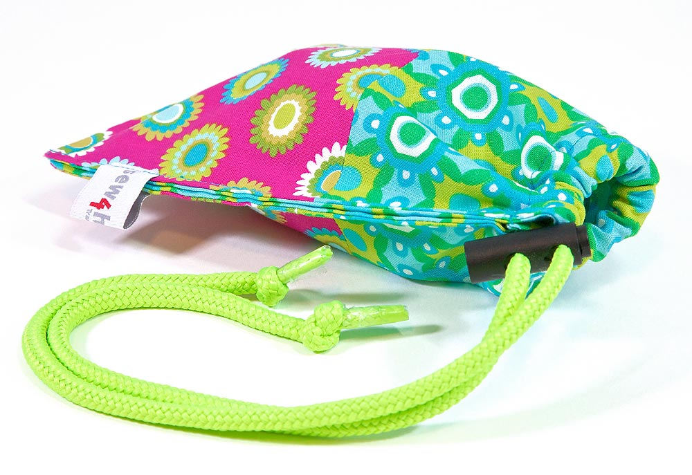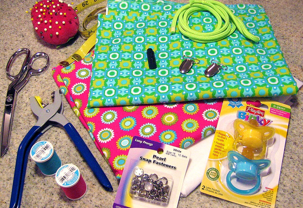 Summer seems like the prefect time to pull up some projects that will make the most of all those pretty pieces in your scrap bag, bin or box. This week’s ScrapBusters Series brings you five great little-bit-o-fabric ideas, starting with today’s perfect baby gift bundle of two binkys on their own little leashes and a matching drawstring carry bag. This project is at the very Tip-Top of the Cutie-Pie Ranking & Rave Scale. For those of you unfamiliar with the C.P.R.R.S., a project’s ranking consists of the combined number and volume of “Ahhhhhhhhhhhhhs” generated at baby showers. It’s an independent ranking, so don’t even try to find it on Google.