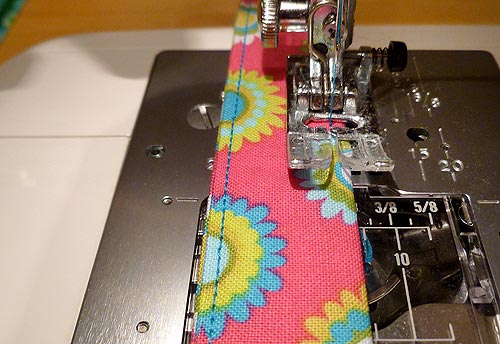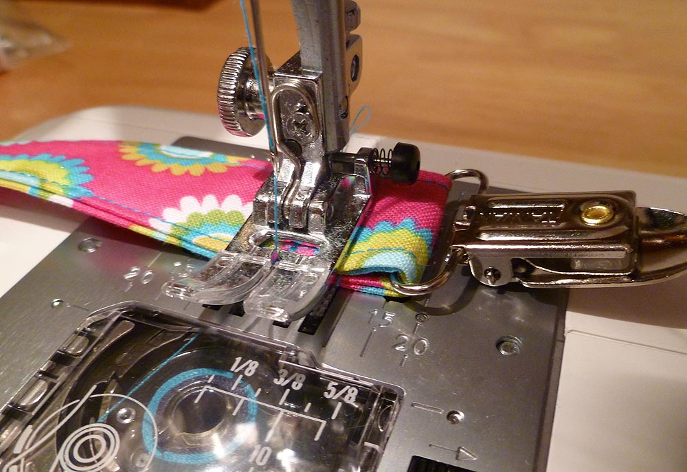 - If necessary, re-thread your machine with contrasting thread and stitch close to the folded edge. Press.