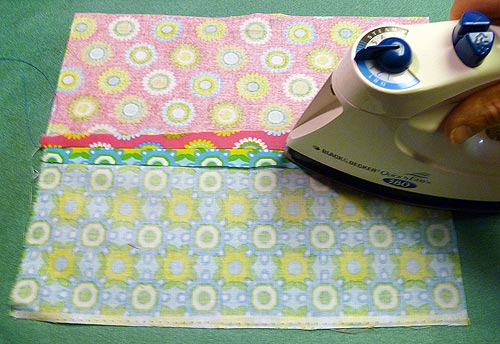 - Stitch together, using a ½” seam allowance. Press seam open.
