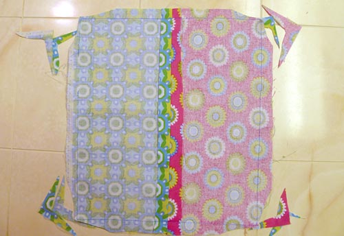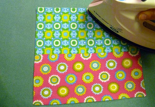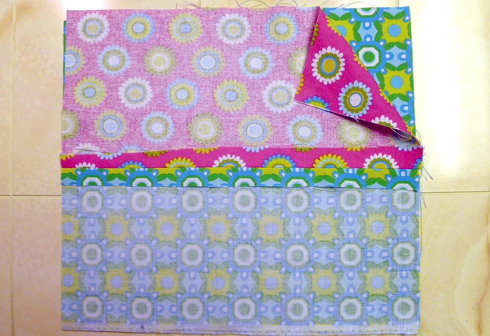 - Find the two 11″ x 5″ pieces – one piece in each of your two coordinating fabrics.