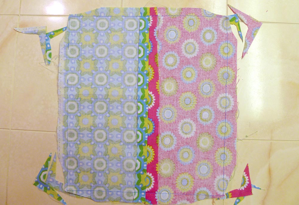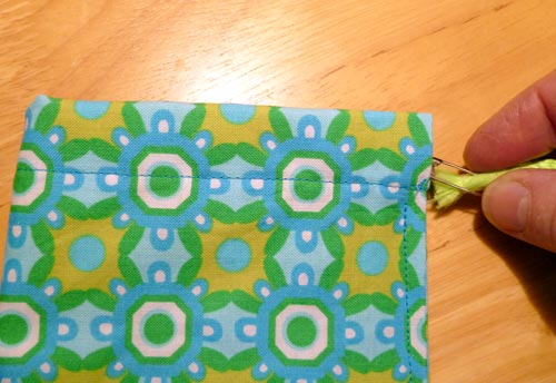 - Turn right side out. Poke out the corners with a blunt-tipped tool, such as a large knitting needle or a chopstick, to make them nice and sharp 90˚ angles.