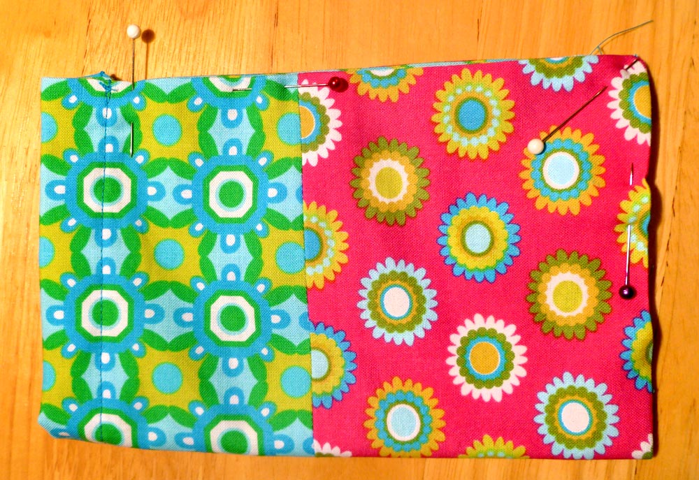 - Place the two pieces right sides together, aligning all the raw edges. Pin along one 11″ side.