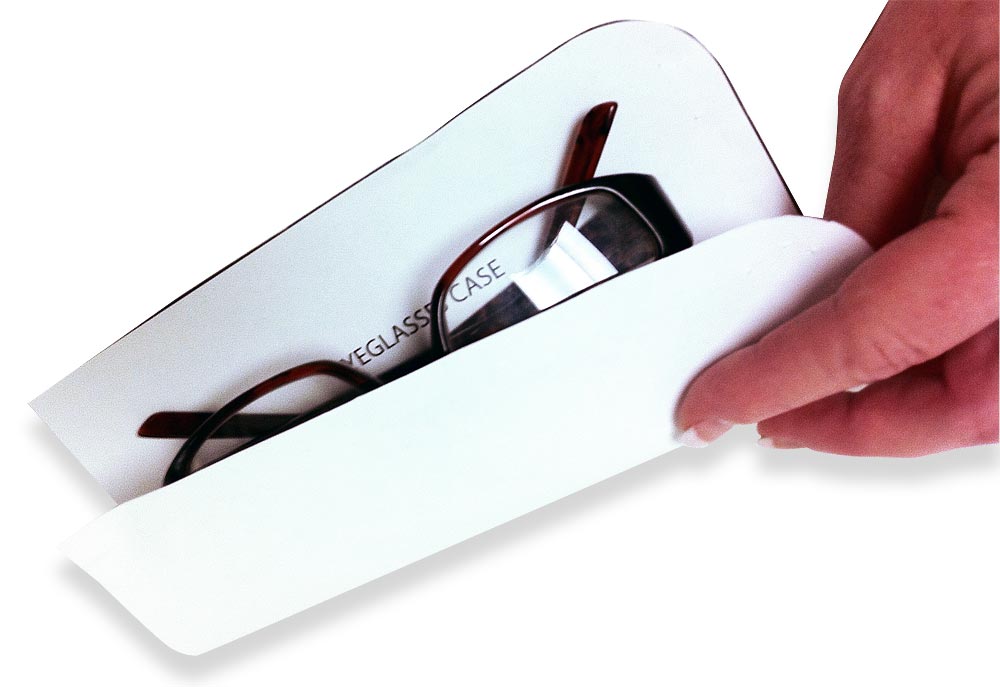 - Test the pattern on your glasses or sunglasses before you cut your fabric. Our case fits standard contemporary frames like the ones shown in our photos. To confirm the fit for your particular glasses, wrap the template around the glasses, noting that about ⅜” will be lost all around in the binding seam.