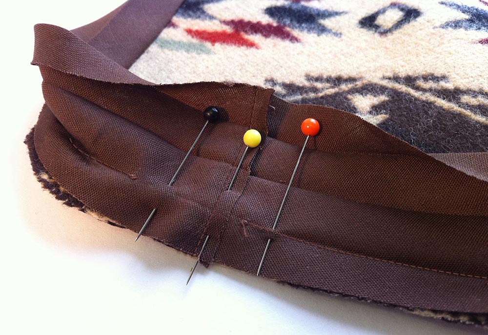 - The binding should now be a perfect flat fit against the fabric. Fold this loose section of the binding back into its original shape and pin in place.