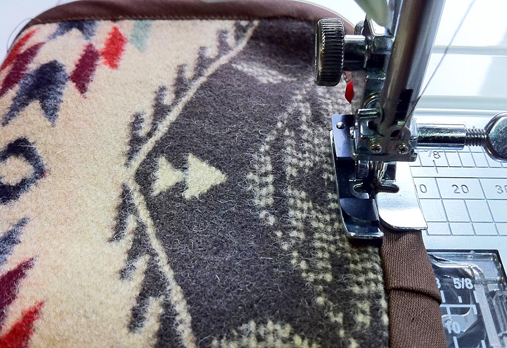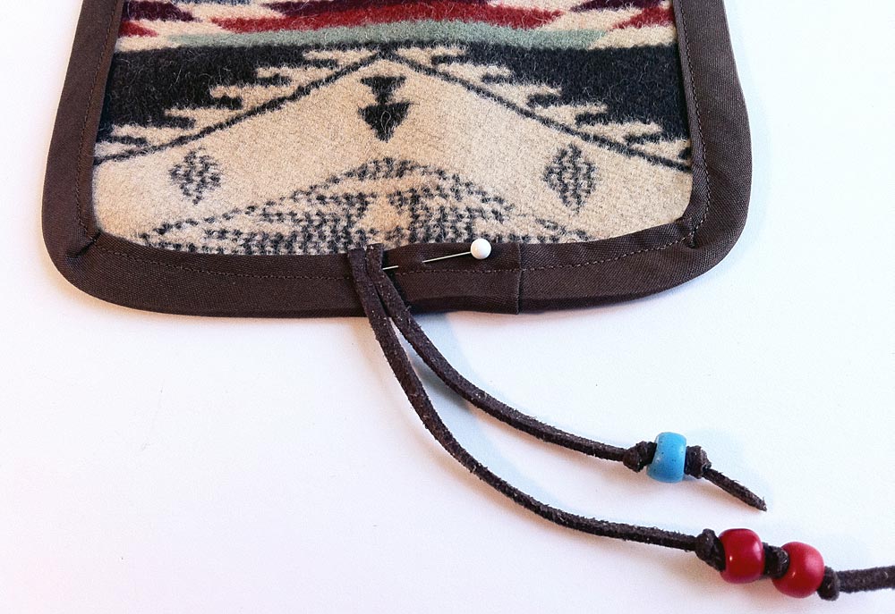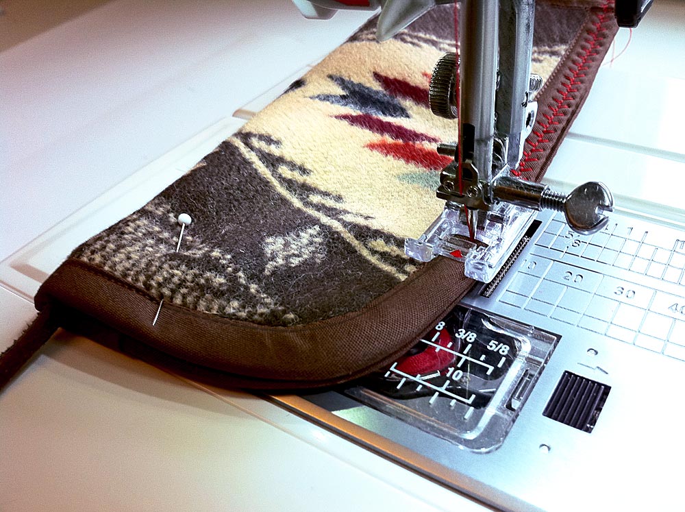 Our sample case is made from a wonderful scrap of Pendleton’s Spirit of the Peoples wool jacquard. You could use any thick, soft fabric. It just needs to be thick enough to hold its shape and soft enough so there’s no chance of scratching your lenses, which does make wool or wool felt a good option.