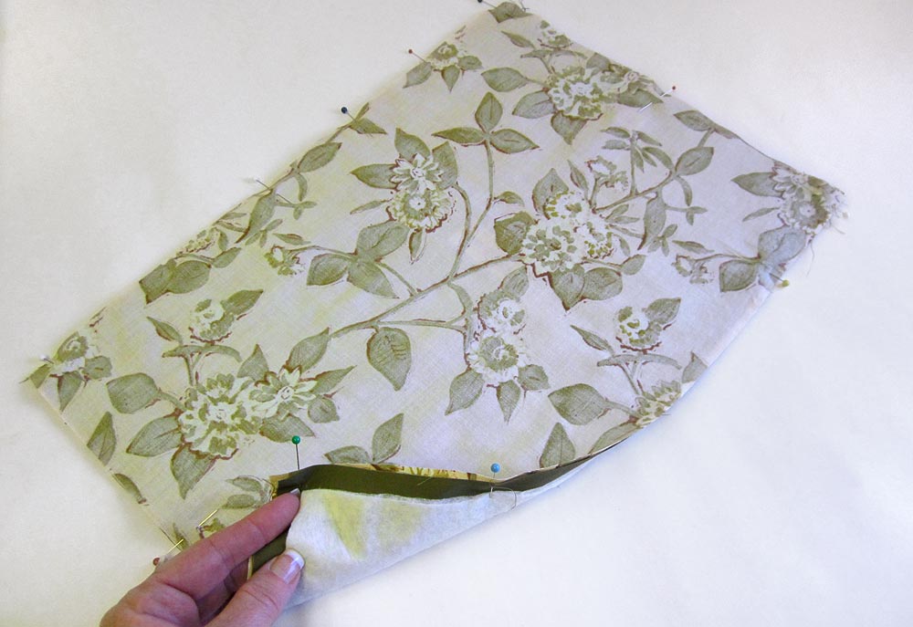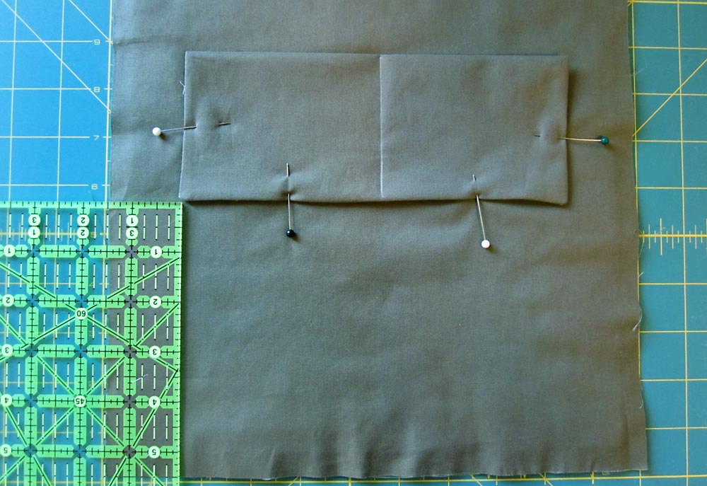 20. Re-fold the bottom up 4¾” and pin along both sides. It is very important that your side edges are flush. Pin in place.