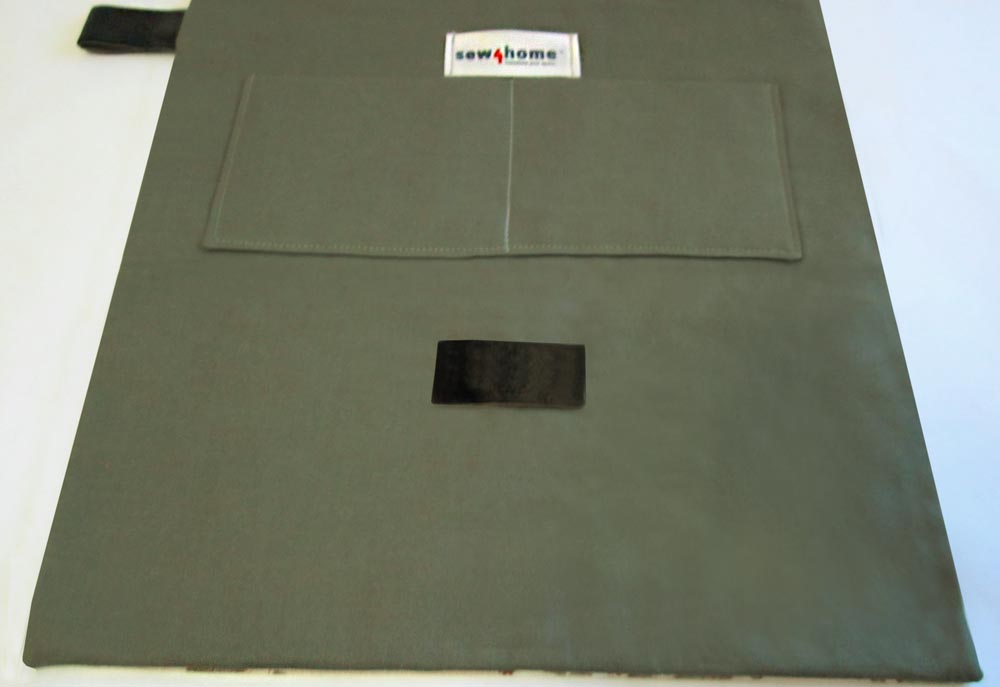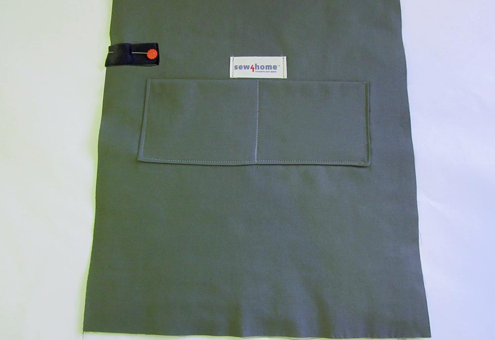 26. We placed the top edge of the pocket 6″ down from the top raw edge of the fabric panel.