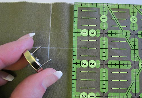 9. Using your fabric pencil, draw a vertical line through the center of the pocket panel.