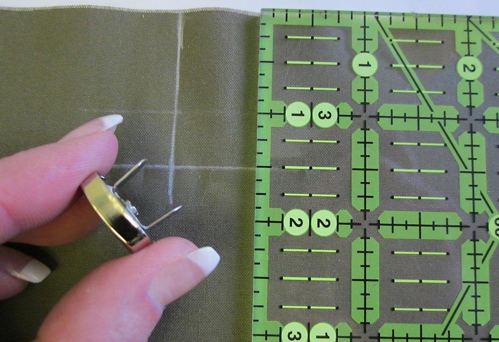 6. Follow manufacturer’s instruction to insert this first half of the clasp. Essentially, you press the prongs into the fabric to create an indent.
