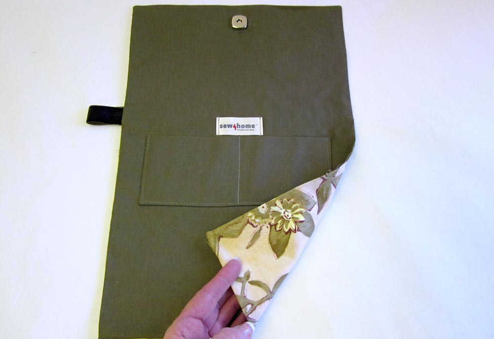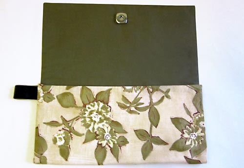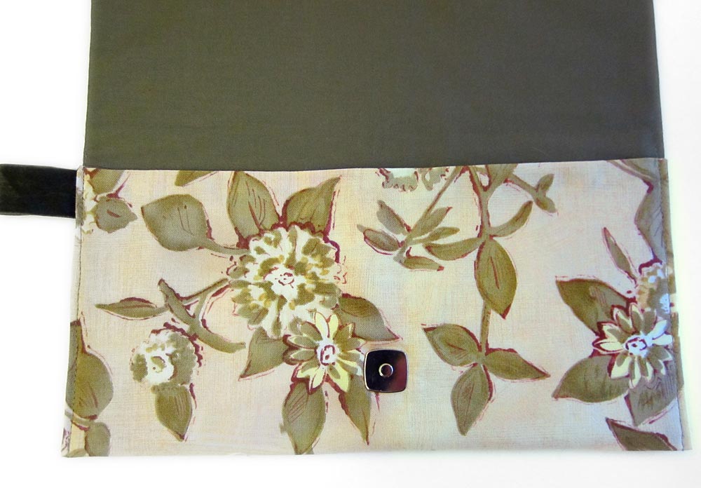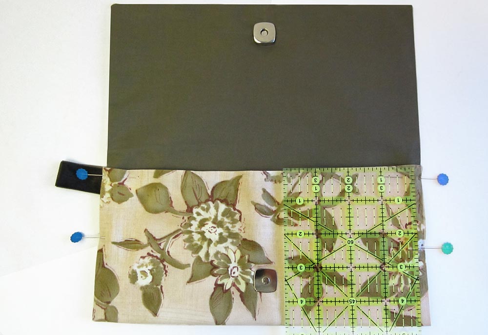 The floral clutch features a printed fabric for the exterior and a solid for the interior and pocket, but for the other three samples, we decided to use the same fabric for all the elements. If you opt for the same fabric inside and out, you may also want to consider substituting the specified fusible fleece with a heavy-weight fusible for the lining, then adding a layer of lightweight fusible on the exterior. This will make the clutches crisp rather than soft.