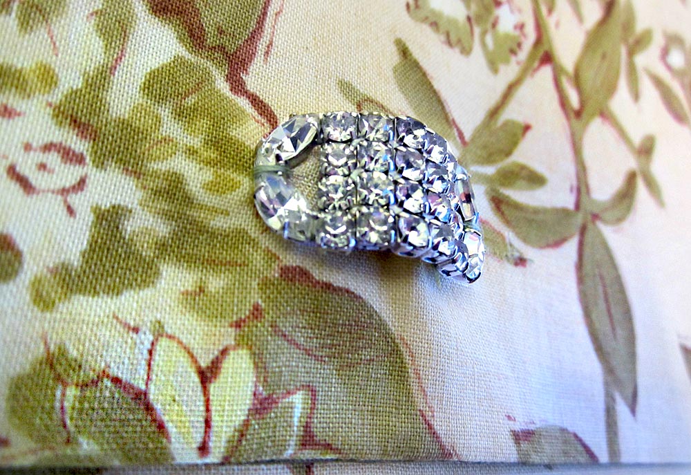 The finishing touch is a little bit of bling on the front as an accent over the magnetic clasp. Our out-on-the-town clutch is embellish with a broken rhinestone earring – a rescued broach would also work. You just need a couple open points on it to allow you to sew the bauble in place. For the other clutches, we had fun finding big, fun buttons to highlight the closure.