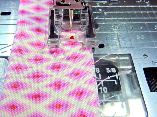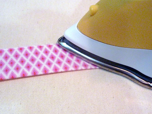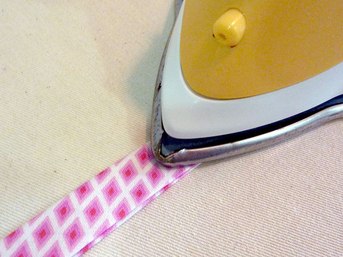 - As above, unfold the bias binding so you can see two of the three crease lines.
