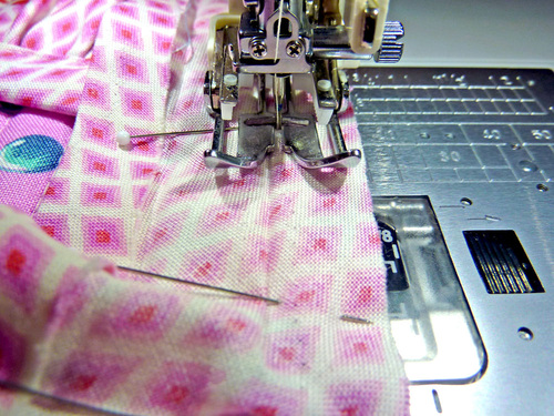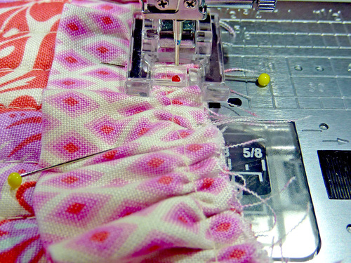 - Machine baste the ruffle in place, running the seam close to the raw edges.