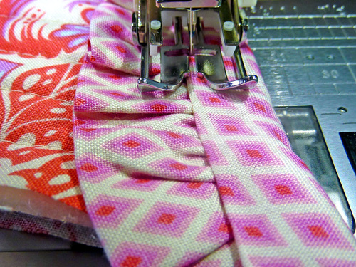 - Run a gathering stitch across the top raw edges of the folded strip.