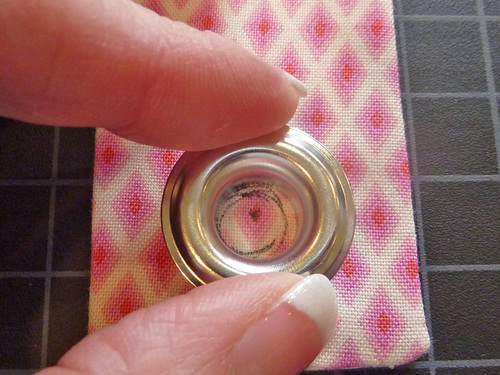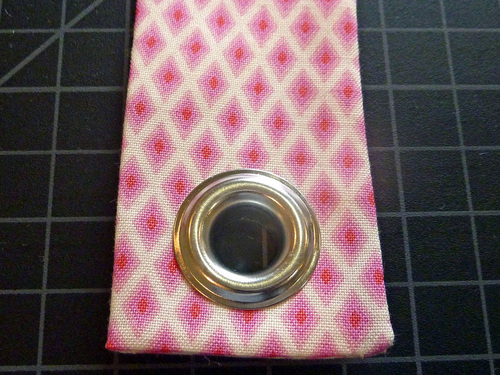 - Insert the grommet, following manufacturer’s instructions or our own handy tutorial on inserting metal grommets.