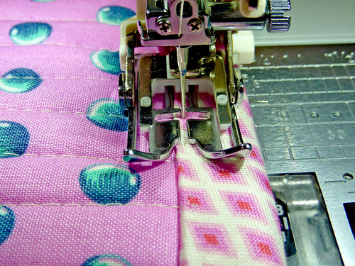 - Stitch the binding in place, running the seam just to the right of the visible crease line.