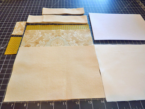 We chose two scrap fabrics with the trendy, slightly glamorous look of metallic highlights on traditional cotton. These fabrics are mixed with a medium-weight twill for the back and base panels.