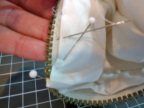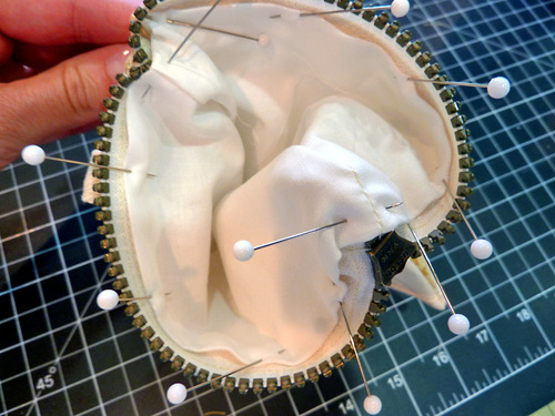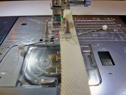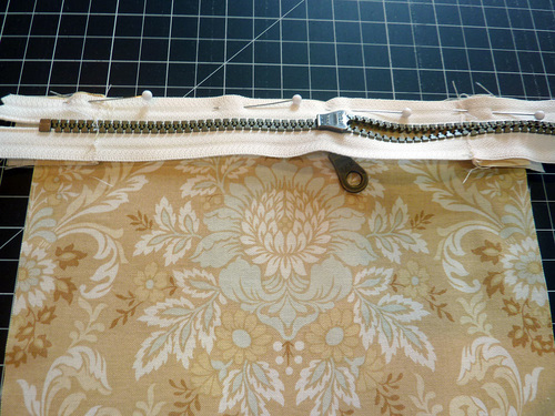 - Pin in place along the top edge of the zipper tape.