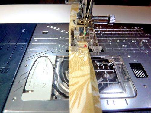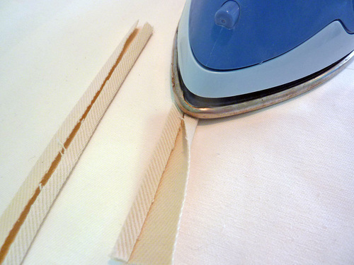 - Fold the entire strip in half, encasing the raw edges and aligning the folded edges. Press again and pin in place.