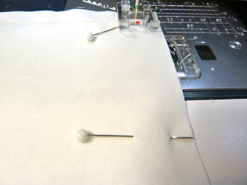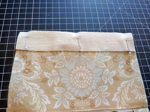 - Fold down the top raw edge of the lining ½” all around. Pin in place.