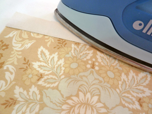 - Fold back the raw edges ¼” along both long sides. Press well.