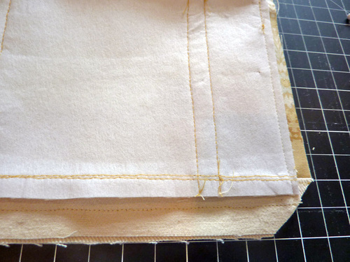- Press the base panels back down into position and edgestitch along the seam within the base panel.