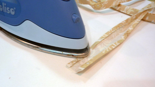 - Press back each 6″ raw edge ¼”, creating two finished straps ½” wide.