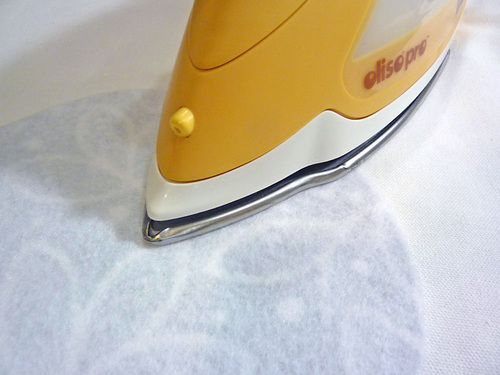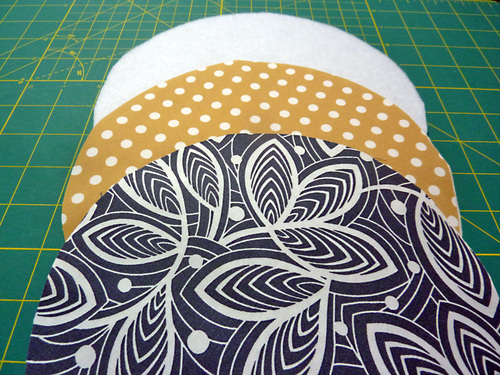 - Following manufacturer’s instructions, fuse a fleece circle to the wrong side of each exterior circle.