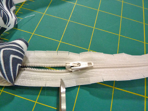 - To allow the zipper tape to curve, snip along both sides of the zipper tape at a depth of about ¼”. The cuts should be approximately ⅜” apart.