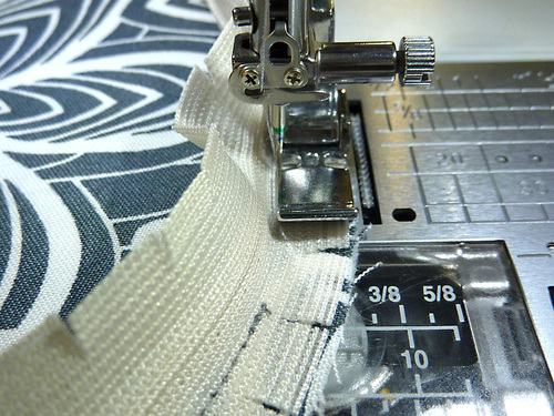 - Stitch the tab in place. Tear away the tape.