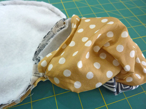 - Turn each circle right side out through the opening over the hinges.