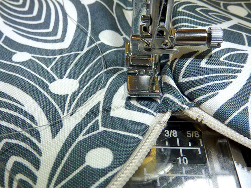- Go very slowly and carefully across the hinge to keep your seam straight and to insure you catch and close the opening used for turning.