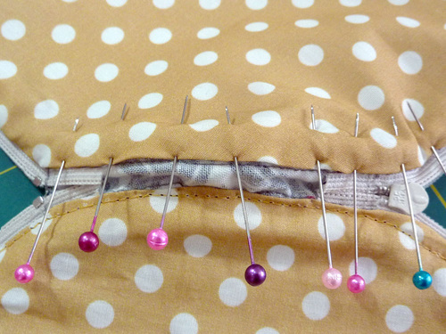 - Close the zipper to check your work. The zipper should sit smoothly and evenly all around.