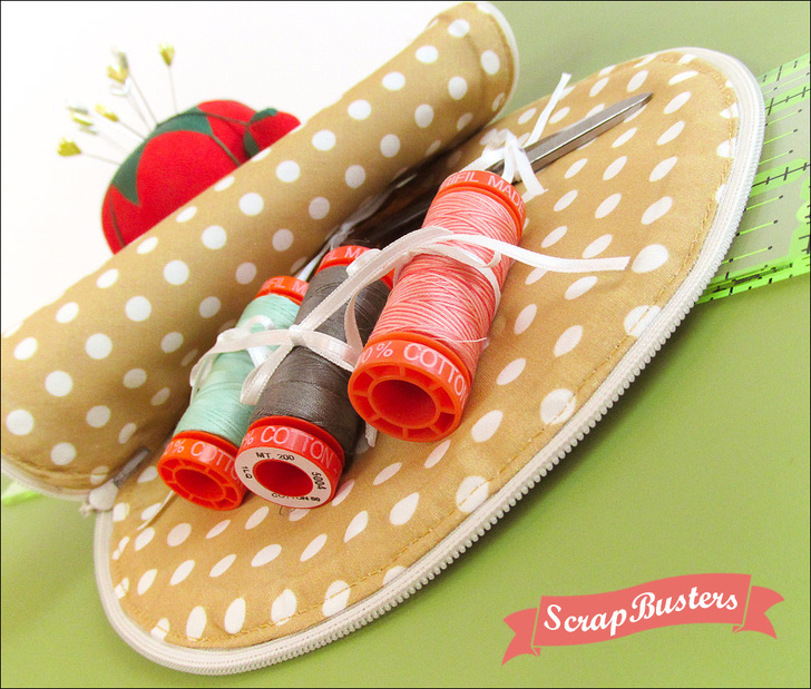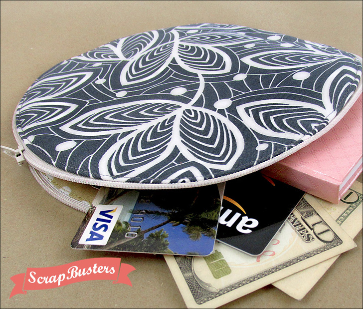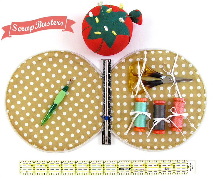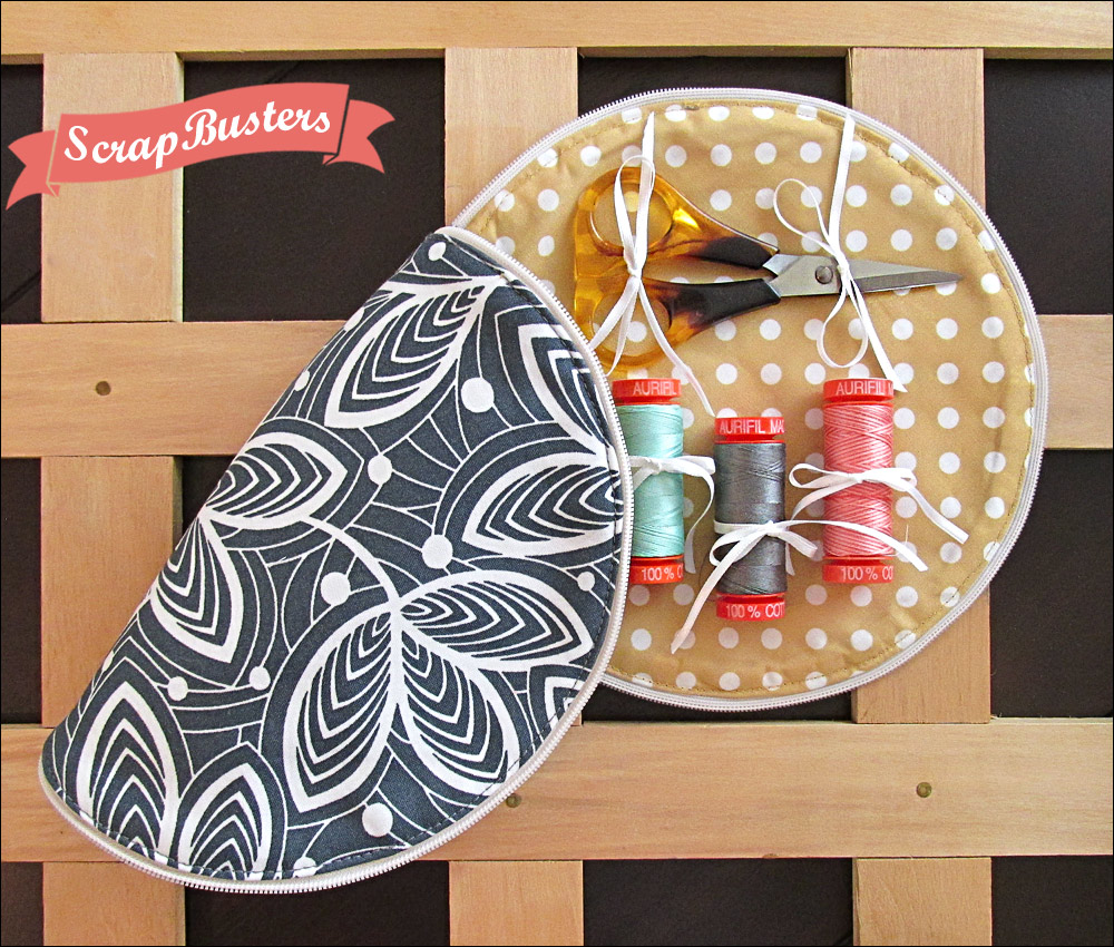 This cute round zippered case falls neatly under our ScrapBusters heading since you need just a few bits of fabric and batting plus a zipper. It also qualifies for our You Asked 4 It category because quite a few of you spotted the full-circle zippered case we made for our original zipper-in-the-round tutorial, and you wanted to know how to put the whole thing together – with a lining. You asked. We answered.