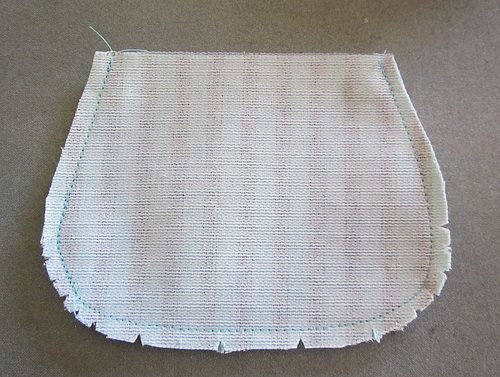 - Re-set the stitch length to normal. Using a ½” seam allowance, stitch around the entire curve of the pouch, leaving the top straight edge open.