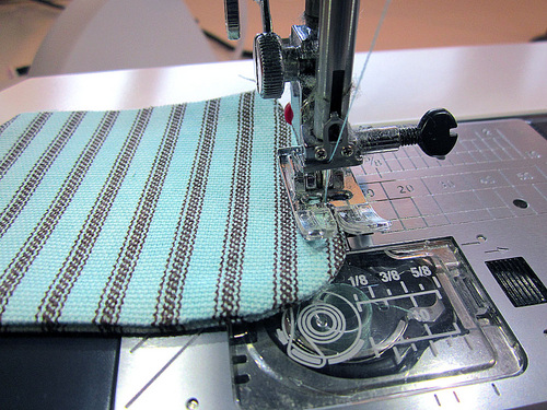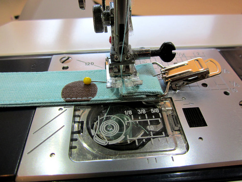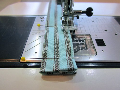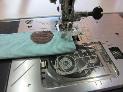 - Stitch across the tab close to the folded edge. We recommend several lines of stitching to create a nice strong seam.