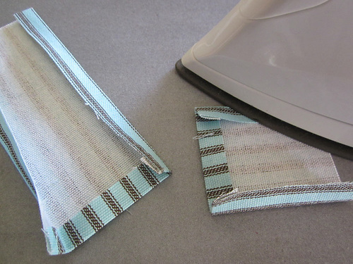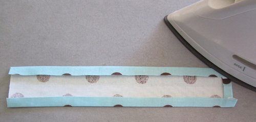 - On each 3” strip, press back the raw edge ½” along both sides and one end.