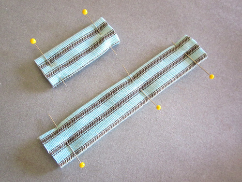 - Fold the strips in half lengthwise, aligning the folded edges. Pin in place.