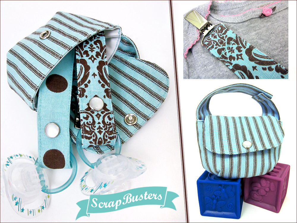 Babies like to suck on things, and today’s orthodontically-correct pacifiers seem to be something the majority of us can agree on as little lifesavers… for both the baby and the parents. However, they also never seem to be where you need them when you need them. We have two solutions: one) a lanyard that snaps onto the pacifier on one end and clips onto a baby’s clothing, stroller or swing on the other end; and two) a cute little pouch that can hold two binkies (on their lanyards) with its own snap-on handle to attach the pouch to a diaper bag, stroller or wherever you might need to have it handy.