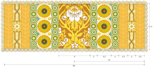 From the Mustard Leafy Stripe, FOUR @ 3″ wide x 12″ high