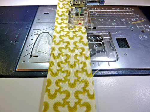 - Fold the loop in half, wrong sides together, so it is now 1″ wide. Press well.
