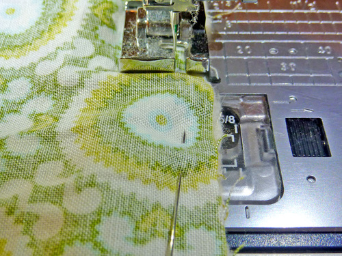 - Remember to pivot at all the corners and to lock your seam at either side of the 6-7″ opening.