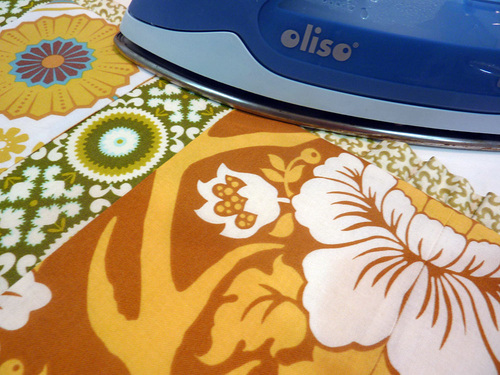 - Press the top panel flat, pressing the seam allowances towards the darker fabric whenever possible.