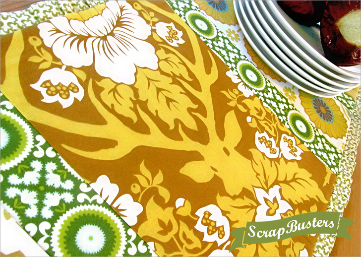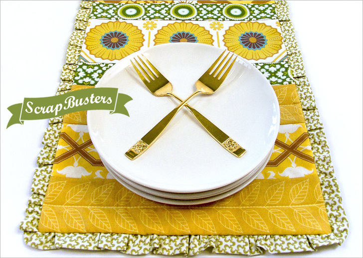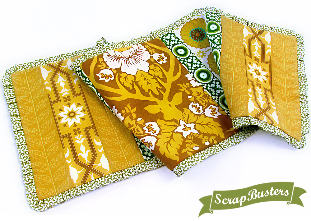 When we’re brainstorming on projects for our popular ScrapBusters series, we like to give you ideas for various sizes and shapes. That’s the beauty of scraps: some are tall and narrow, some are short and squat, some are simply chunks and hunks of great color and design. They’re all so pretty, and we saved them for a reason, right? Because we want to use them again! Dig down for those tall and narrow pieces in your scrap stash, fussy cut them to center the prettiest possible vertical motifs, then stitch them together into this striking table runner with a subtle ruffled edge.