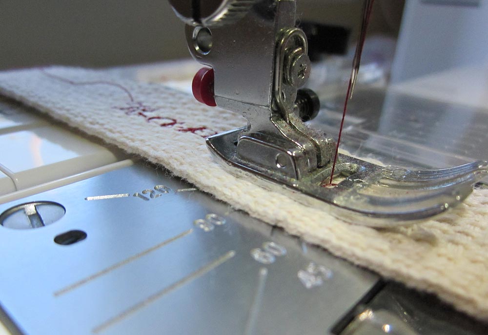 - Stitch the tape along both long sides with a plain or decorative stitch. We used a straight stitch set at its longest stitch length.