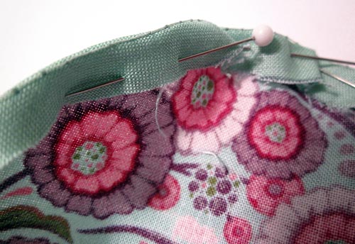 - Fold and press under the raw edge, using the basted line of stitching as your fold point. This line-of-basting-method is a slick way to fold and press a narrow, curved hem for appliqué; it gives you an easy, tactile edge to fold against. We like to fold and pin first and then press.